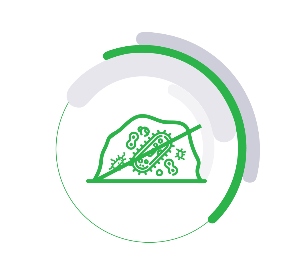 TridAnt® improves patient safety and enhances device performance, with a combination of active and passive components that inhibits protein deposition and bacterial adhesion on surfaces, while killing pathogens. Coated surfaces function as disinfection for as long as they remain in the body, thanks to the unique Contact Kill Mechanism.